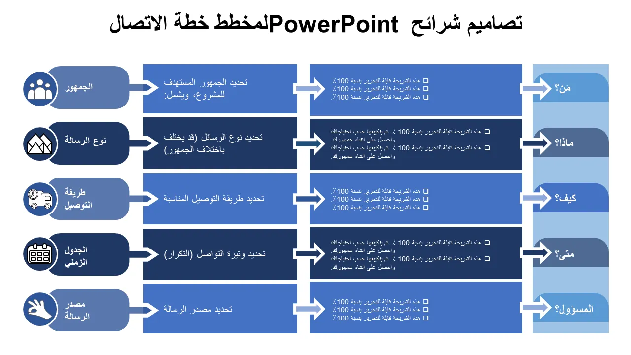 الخطوط العريضة لخطة الاتصالات لتصاميم شرائح Powerpoint