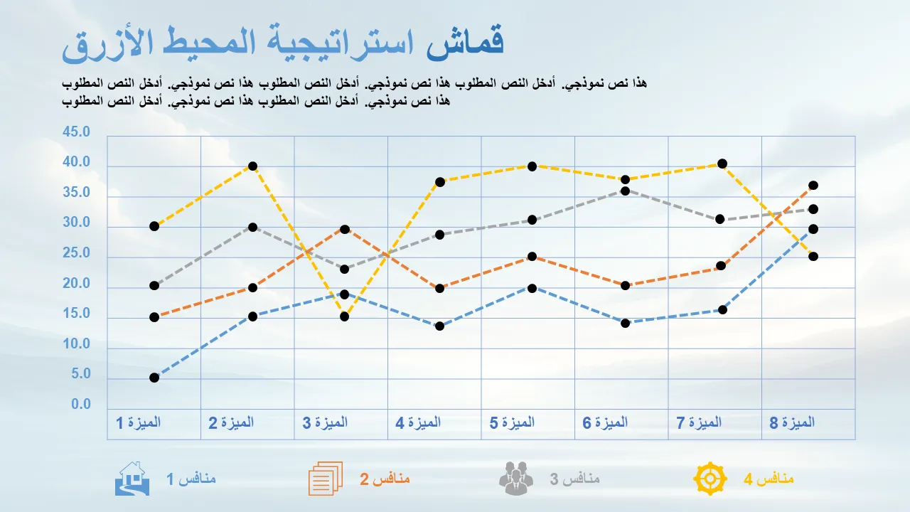 قالب Blue Ocean Strategy Canvas جذاب بصريًا، مصمم للعروض التقديمية الخاصة بنمو الأعمال. مثالي للتخطيط الاستراتيجي وتمايز السوق والتحليل التنافسي. قم بالتنزيل الآن.