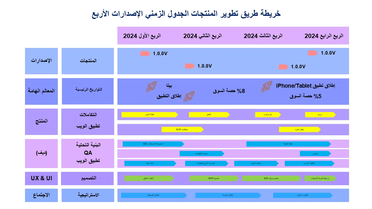 خريطة طريق تطوير المنتج، الجدول الزمني، معالم التطوير، إصدارات المنتج، قالب PowerPoint لأربعة أرباع للعروض التقديمية الاحترافية
