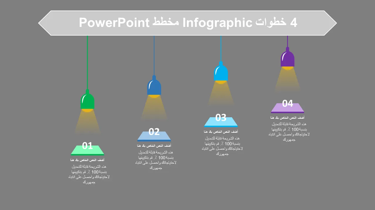 - أربعة أقسام خطوات متميزة مع رموز ومربعات نص قابلة للتخصيص