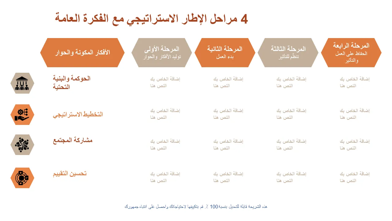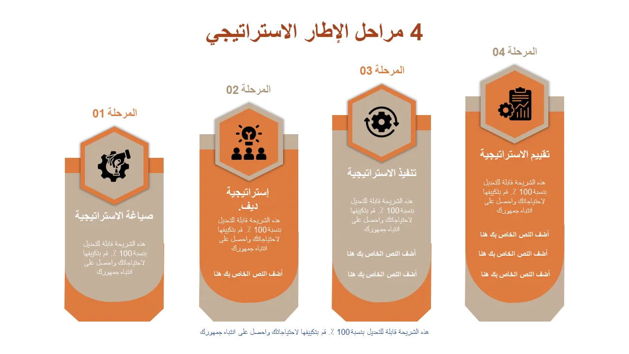 قالب PowerPoint لإطار تنفيذ الإستراتيجية المكون من 4 مراحل