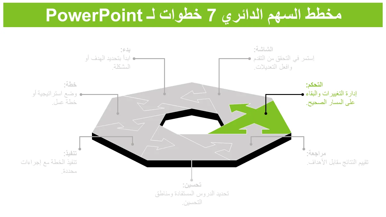 شرح قالب PowerPoint لمخطط السهم الدائري المكون من 7 خطوات