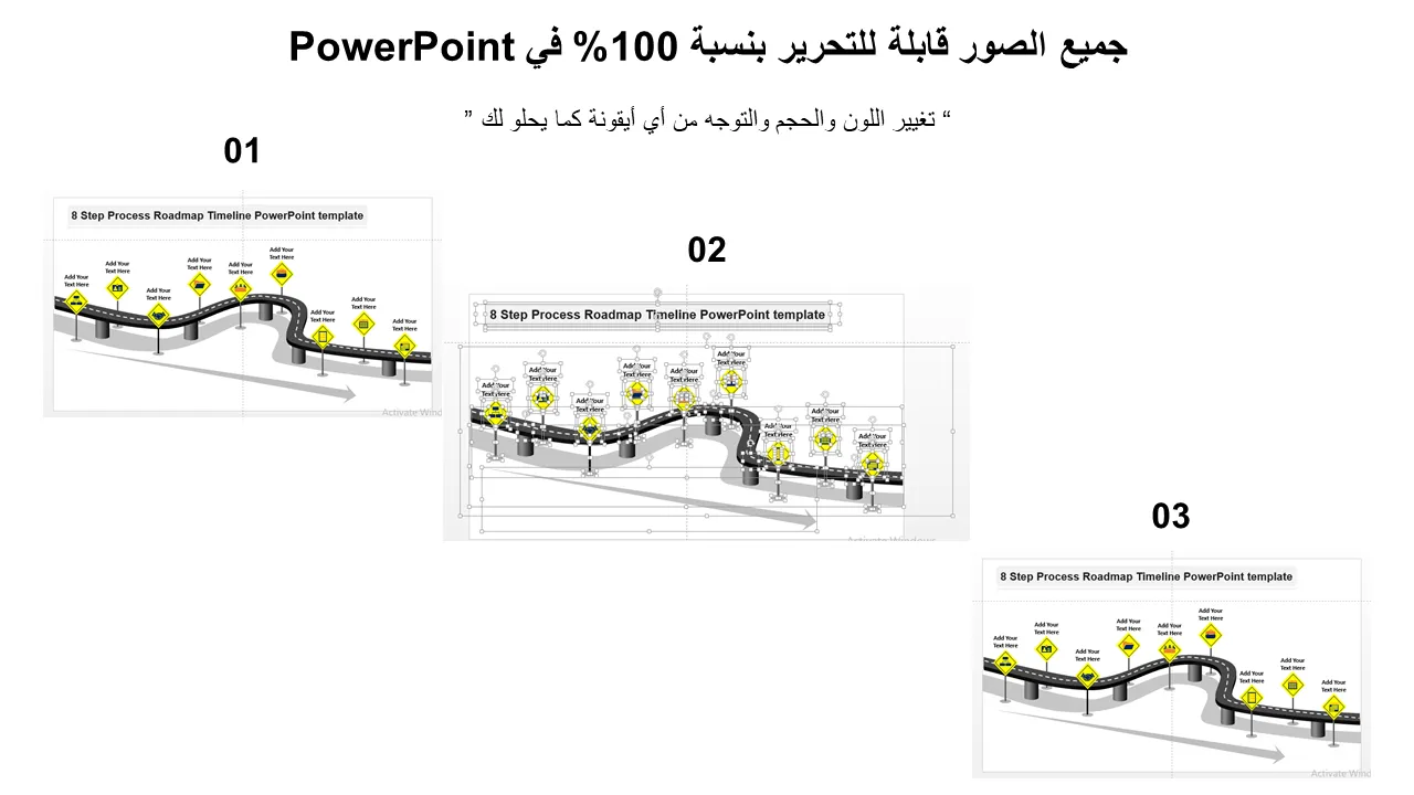 8 خطوات لخارطة الطريق لخطة زمنية لقالب Powerpoint
