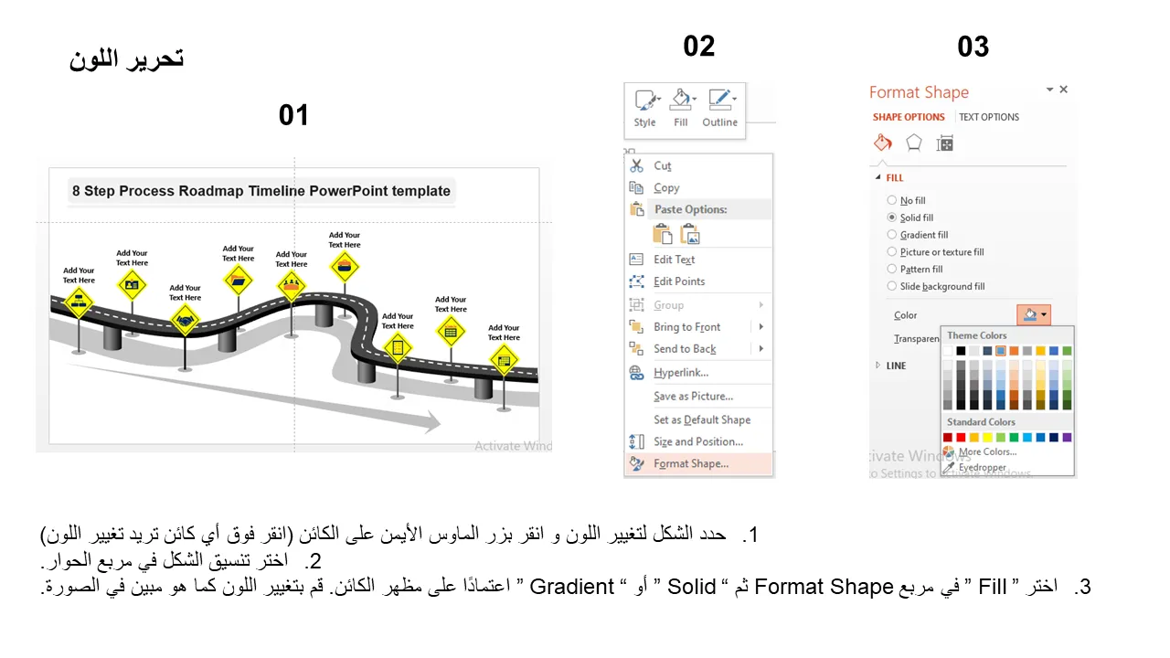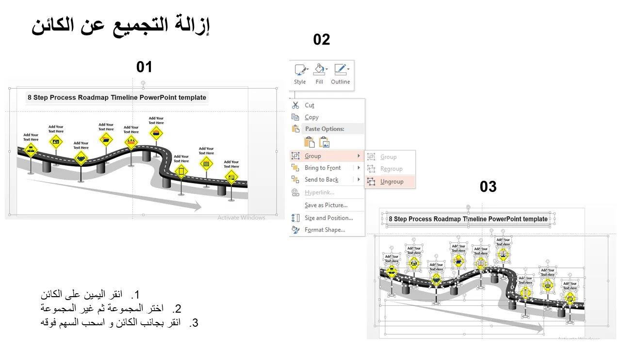 شرح قالب PowerPoint للخط الزمني لخارطة طريق العملية المكونة من 8 خطوات