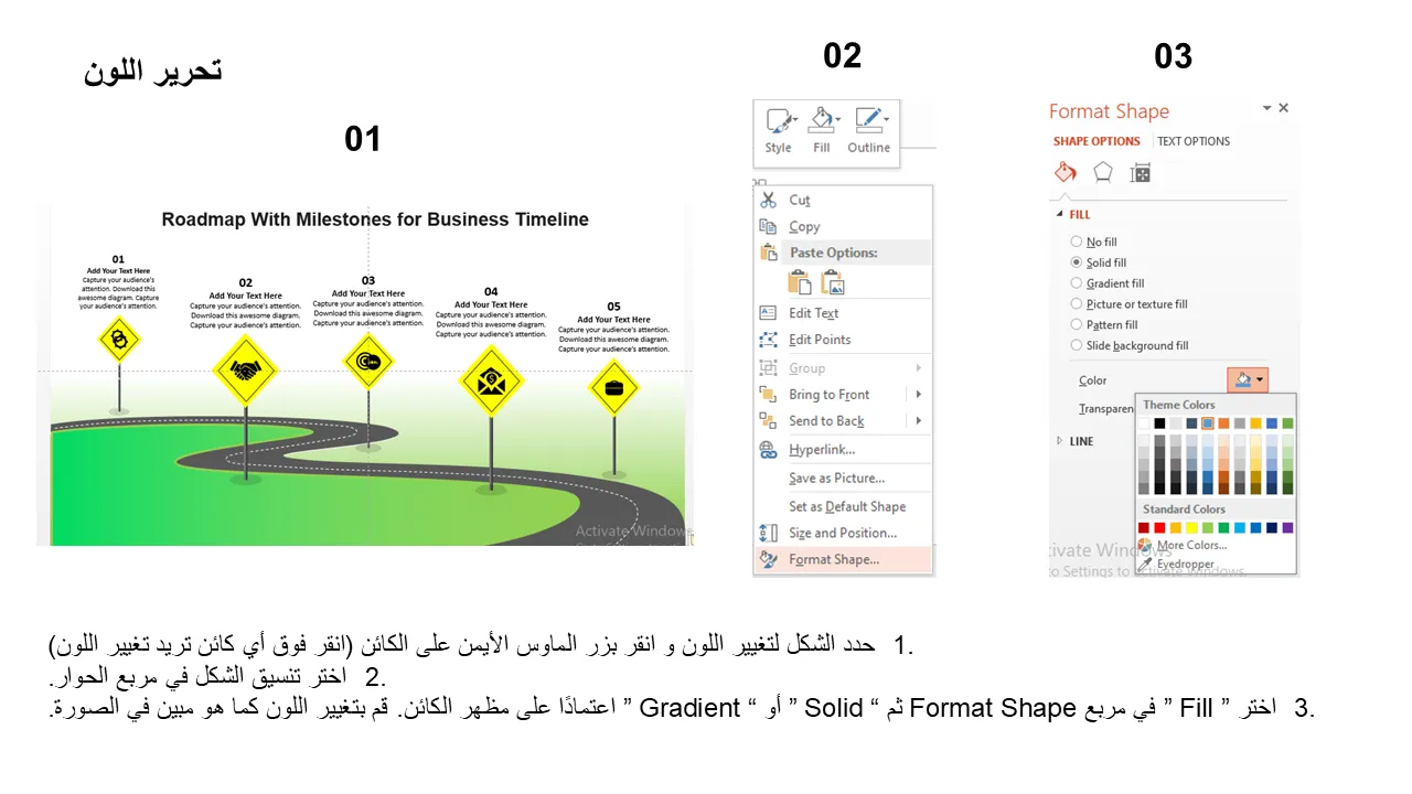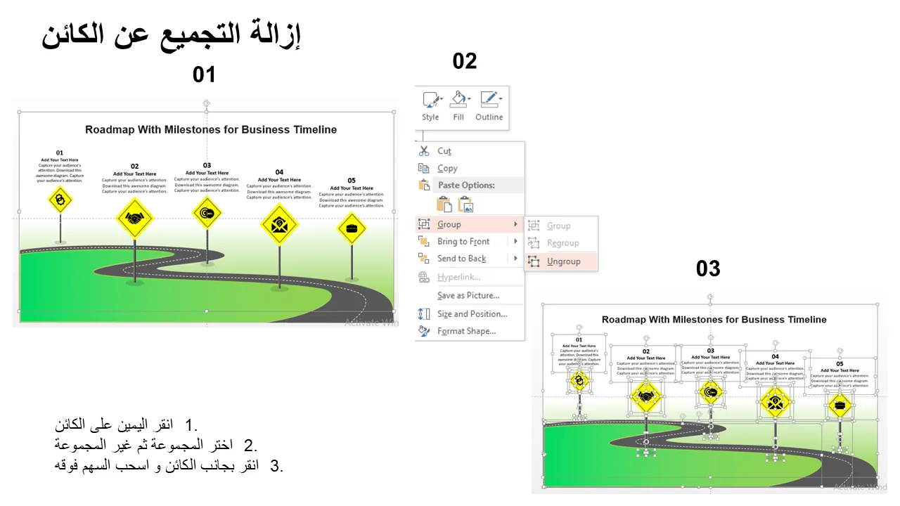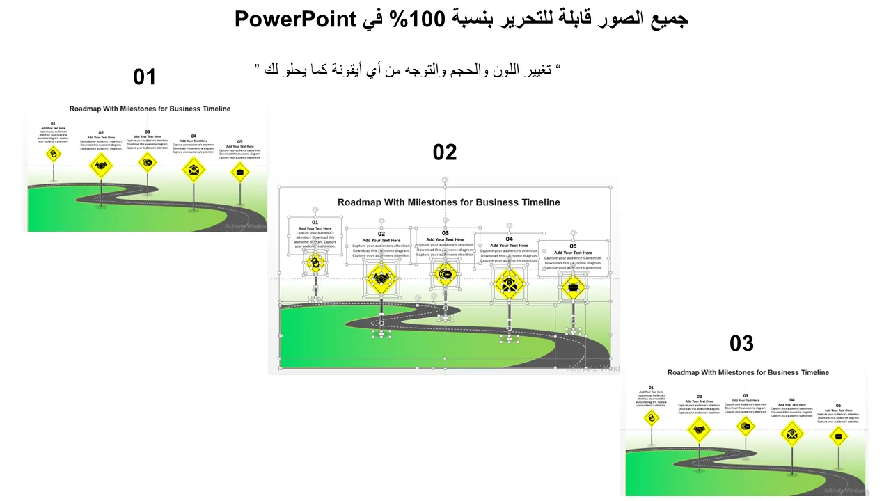 خريطة الطريق مع المعالم الرئيسية للمخطط الزمني للأعمال شرح تصميم Powerpoint المسطح