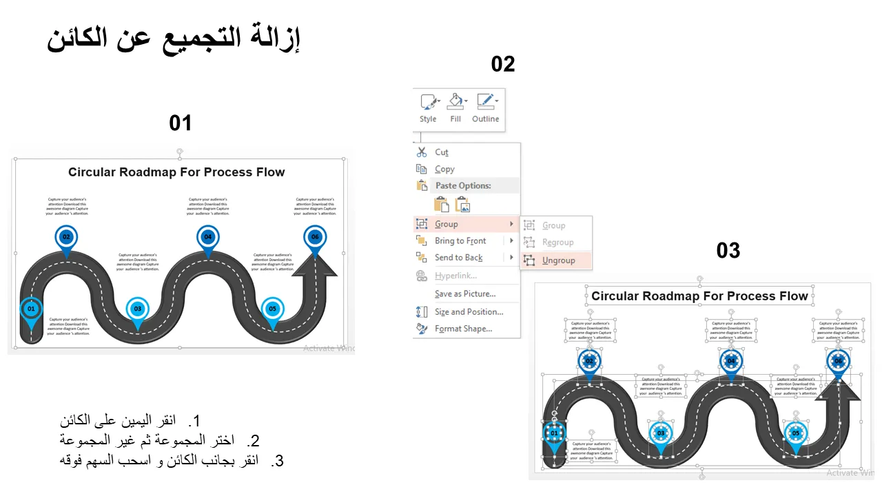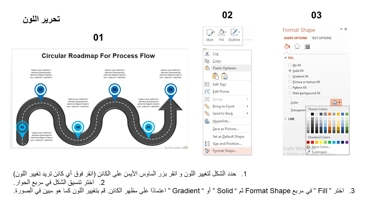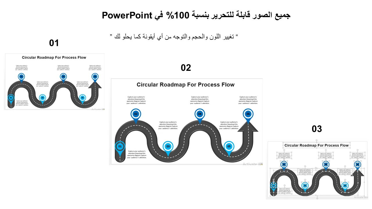 شرح قالب PowerPoint لخريطة طريق تدفق العمليات الدائرية