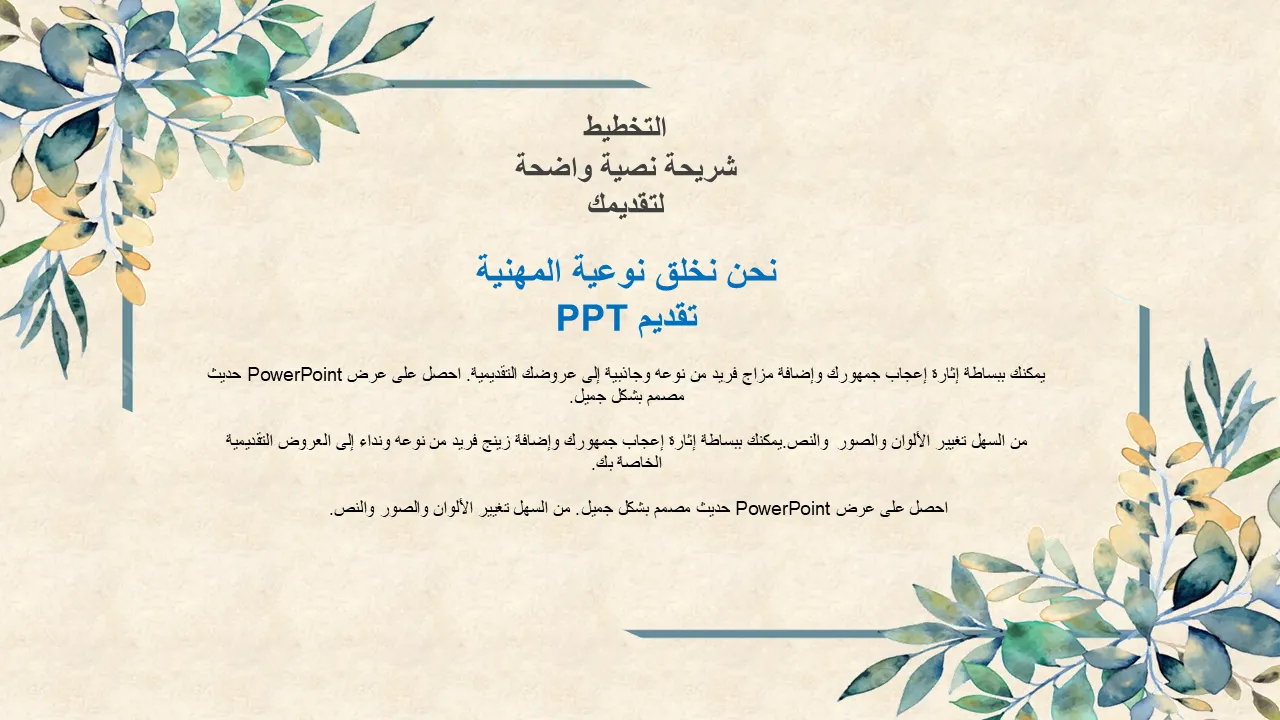 شرح قوالب Powerpoint بإطار أوراق خضراء مائية
