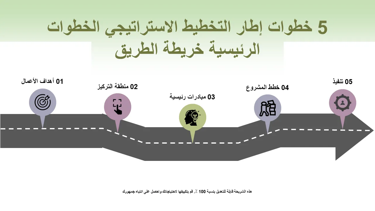 معالم خارطة الطريق إطار التخطيط الاستراتيجي اتجاه الأعمال تحقيق الأهداف إعداد قالب PowerPoint للعروض التقديمية المهنية