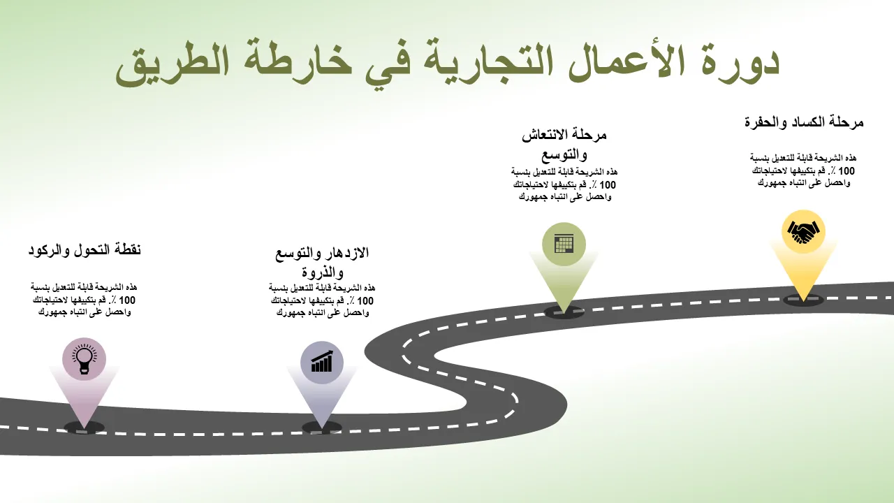 مميزات معالم خارطة الطريق إطار التخطيط الاستراتيجي اتجاه الأعمال تحقيق الأهداف إعداد قالب PowerPoint للعروض التقديمية المهنية