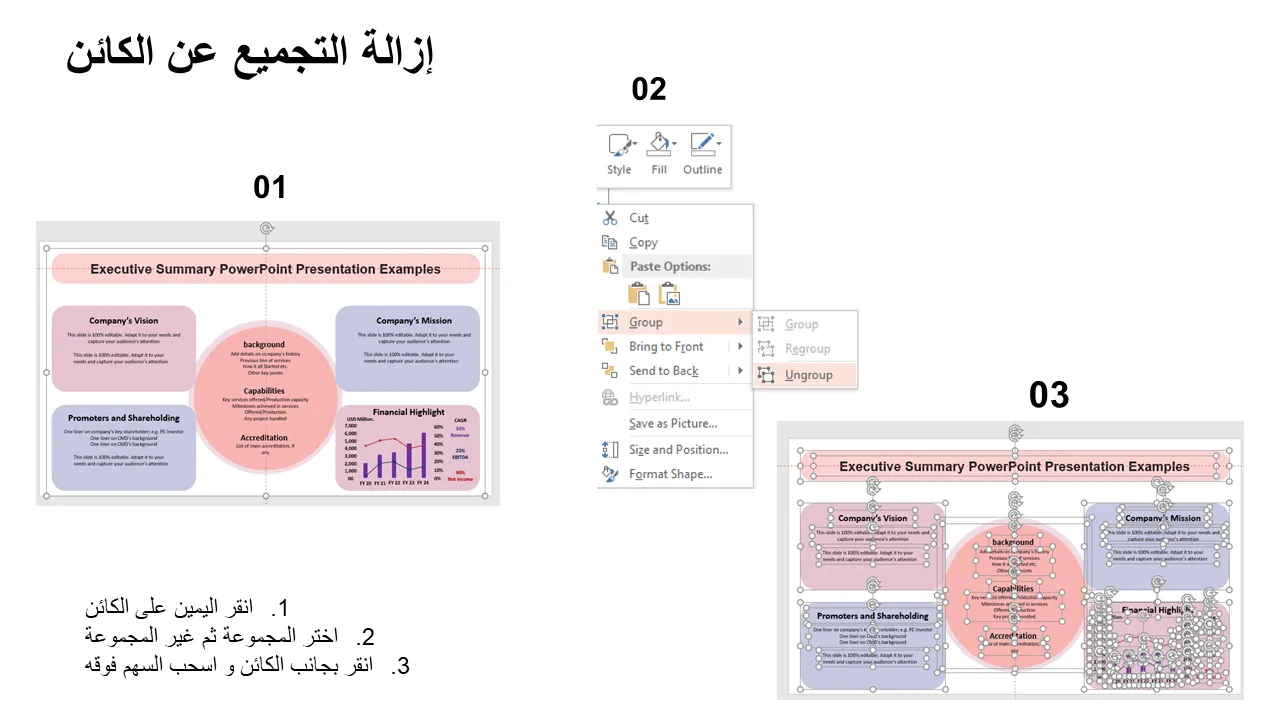 شرح أمثلة عرض Powerpoint للملخص التنفيذي