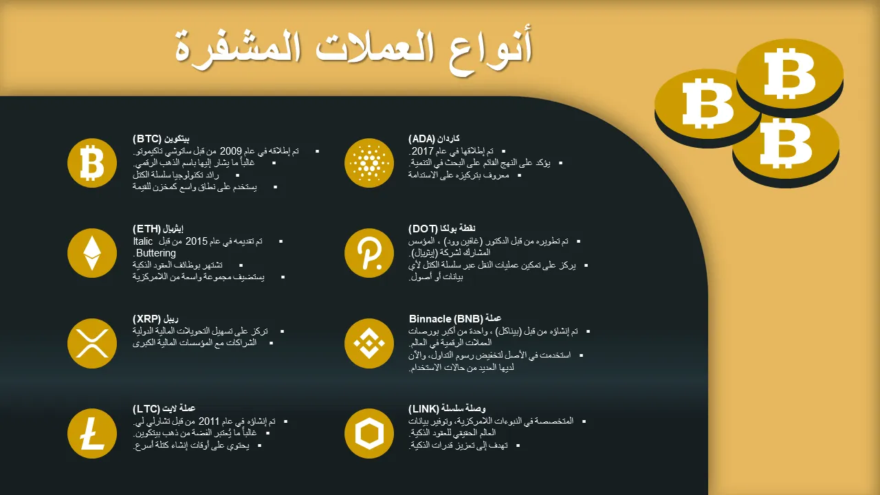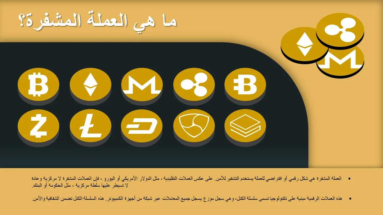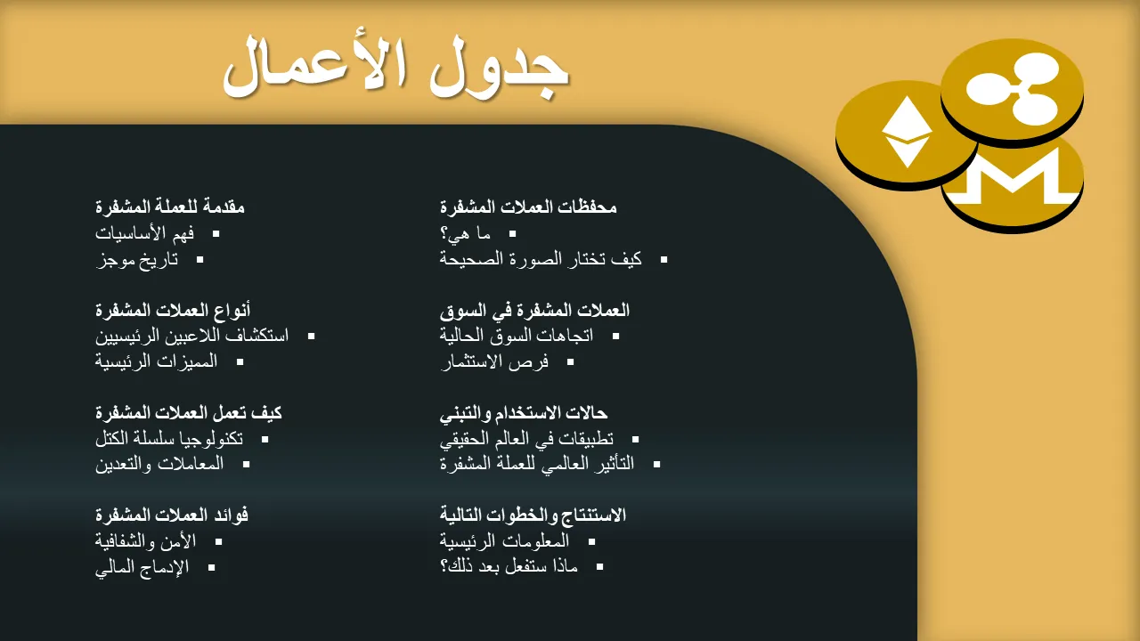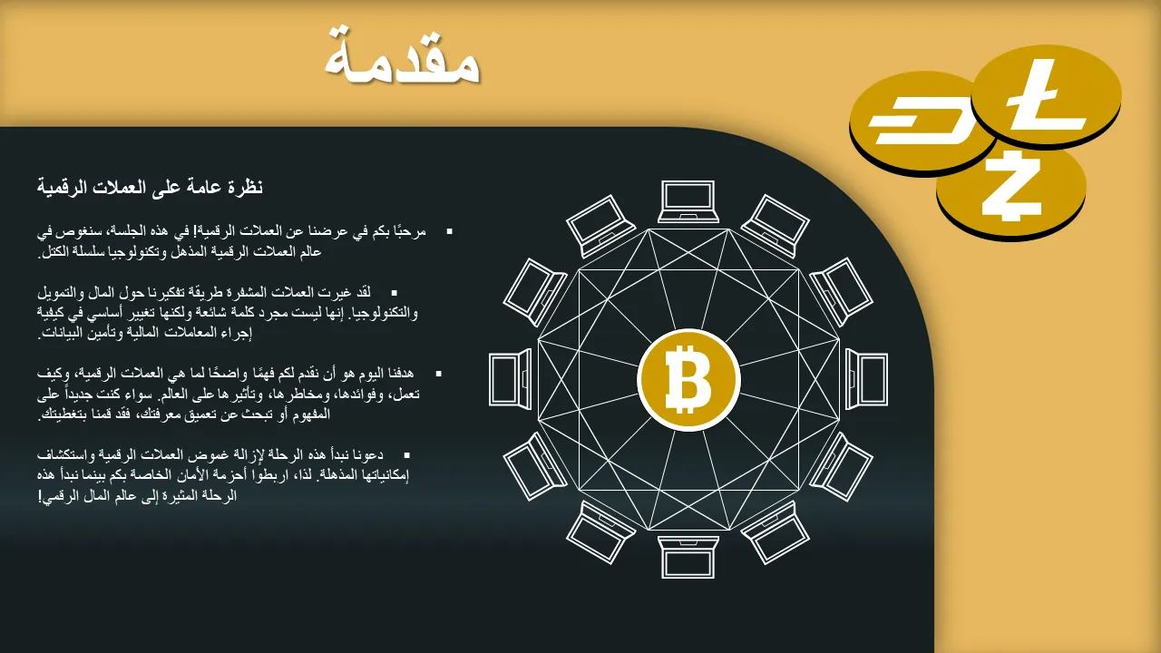 - شرائح معدة مسبقًا تغطي نظرة عامة على العملات المشفرة والفوائد والمخاطر والاتجاهات المستقبلية