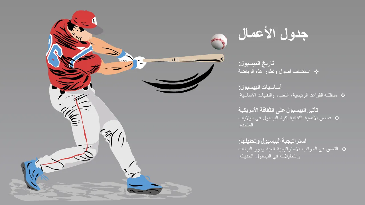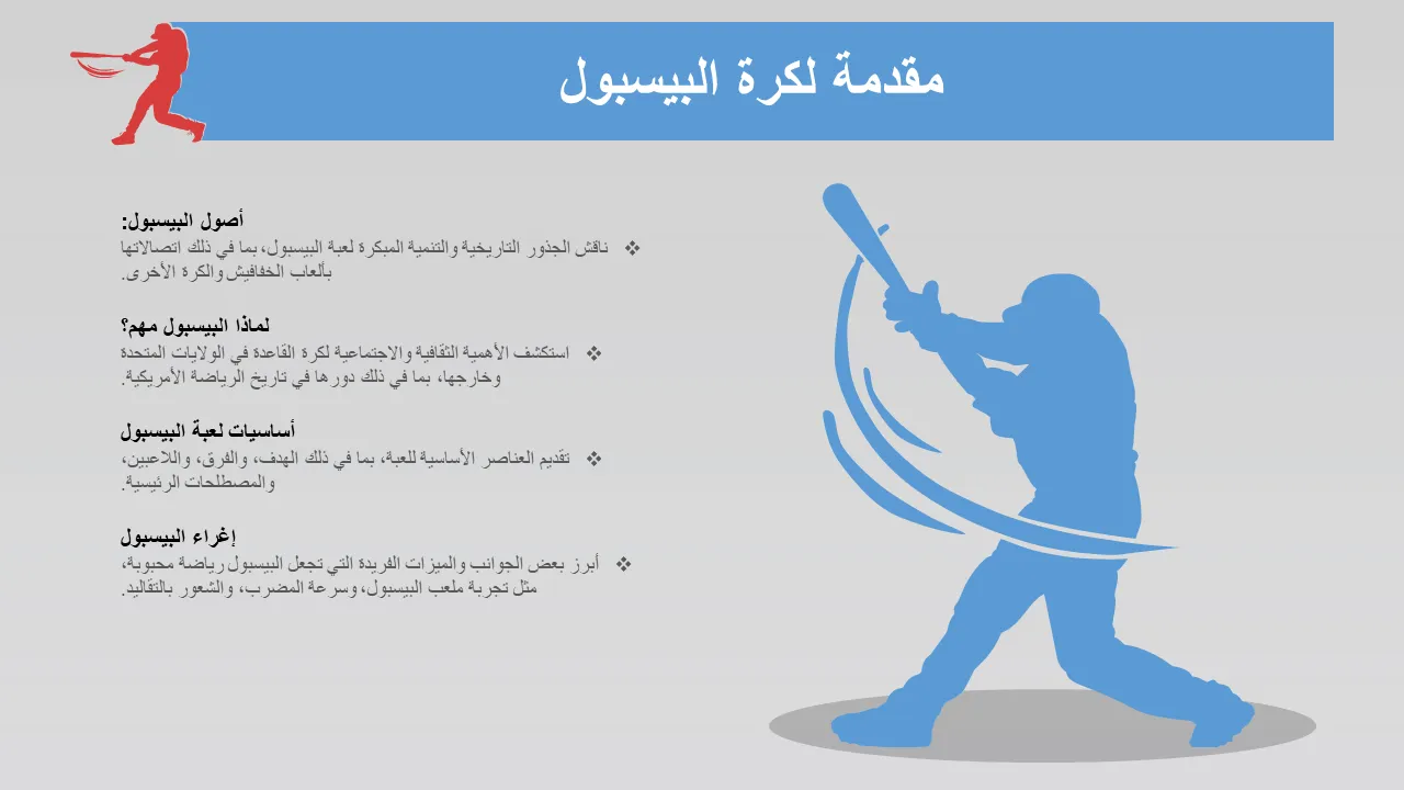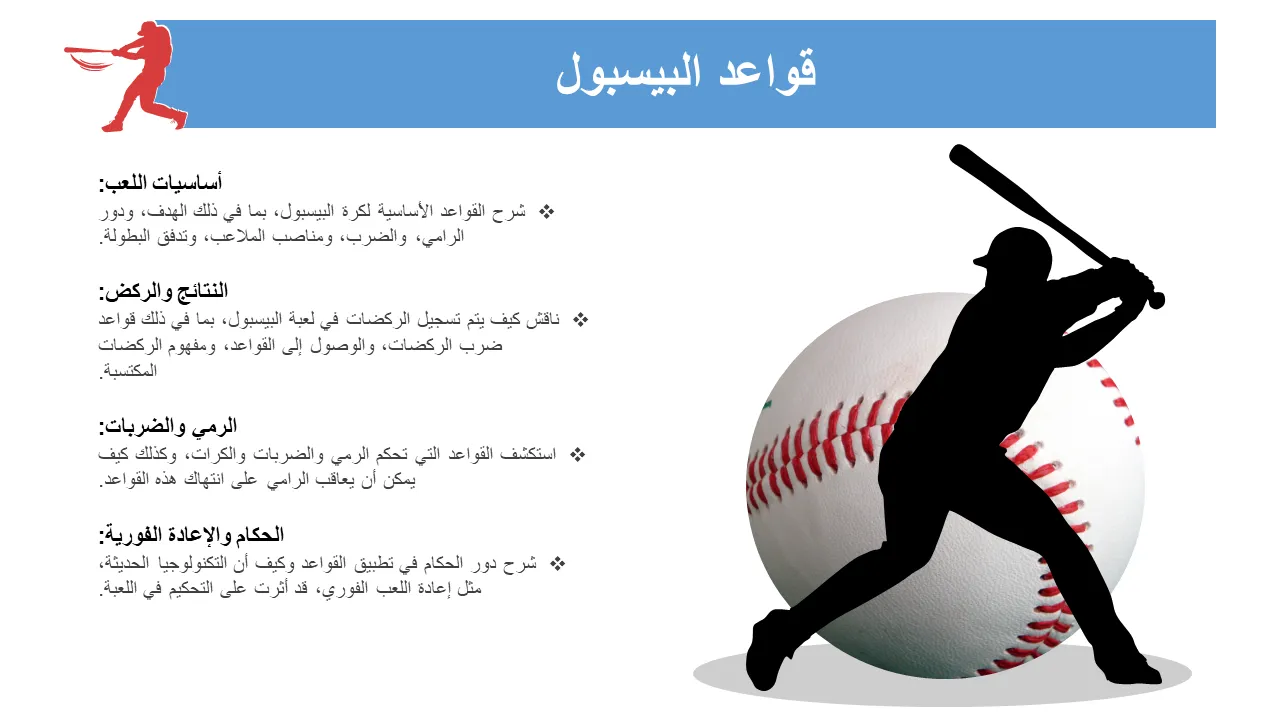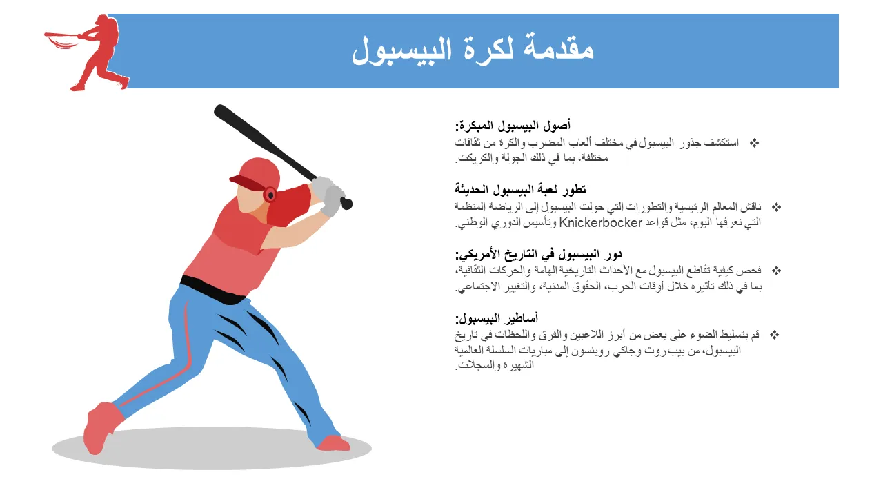شرح قالب PowerPoint لتاريخ وثقافة البيسبول