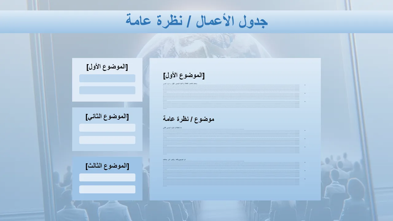 - هيكل جدول أعمال مصمم مسبقًا للتدفق السلس للنقاط الرئيسية