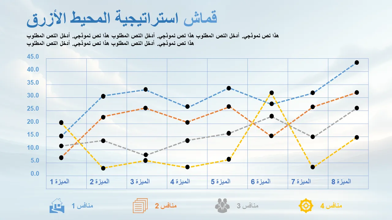 تم تصميم قالب PowerPoint الاحترافي هذا لمساعدة الشركات على تصور وتنفيذ التمايز الاستراتيجي من خلال إطار عمل إستراتيجية المحيط الأزرق. فهو يوفر تصميمًا نظيفًا وحديثًا يرشد المستخدمين إلى تحديد مساحات السوق غير المتنازع عليها وإنشاء طلب جديد. يعد هذا القالب مثاليًا للمديرين التنفيذيين والاستشاريين والاستراتيجيين، حيث يعمل على تبسيط مفاهيم إستراتيجية العمل المعقدة إلى أداة مرئية قابلة للتنفيذ.