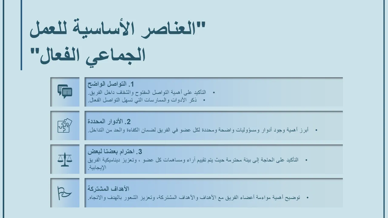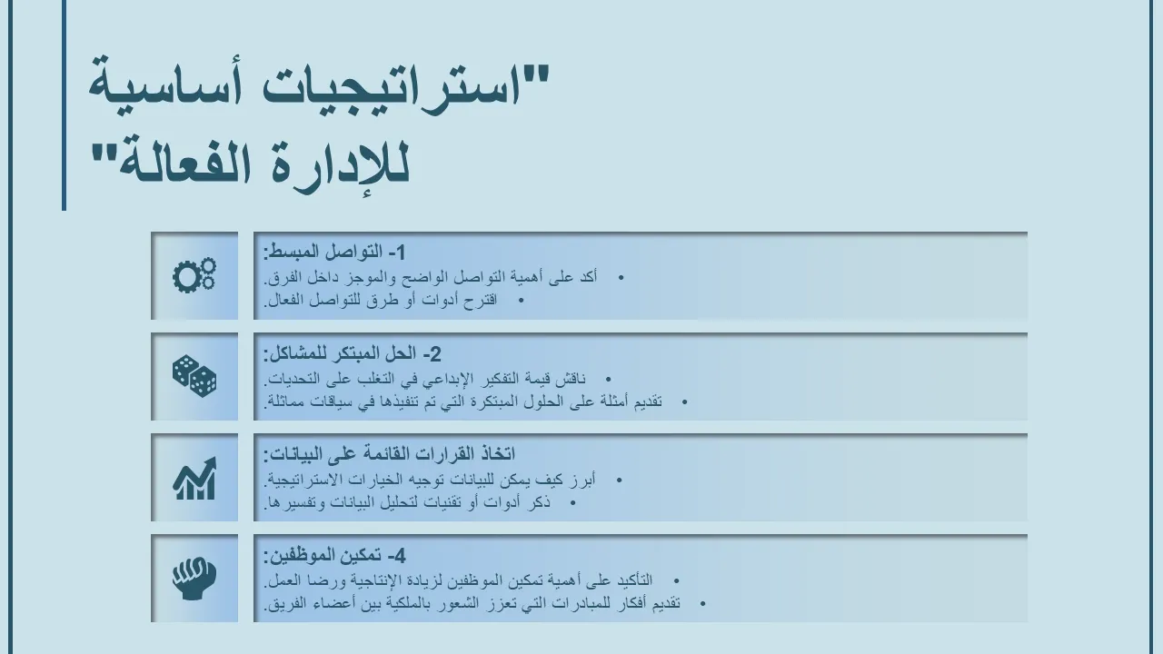 - لغة تصميم متسقة عبر جميع الشرائح لسرد قصص متماسك