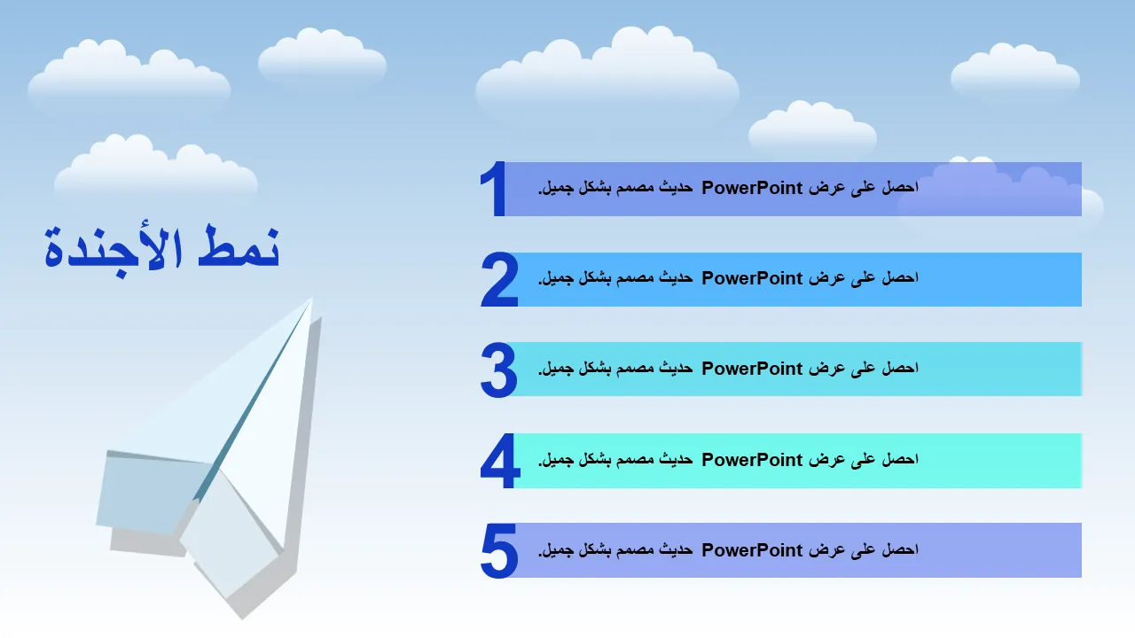 شرح قالب PowerPoint لتصميم الطائرة الورقية الزرقاء