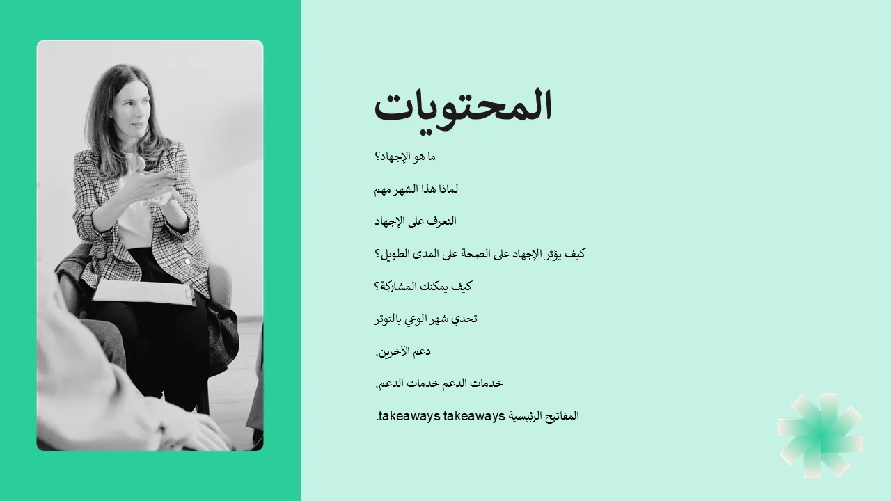FAQ - شرائح شهر التوعية بالإجهاد لعروض الأعمال