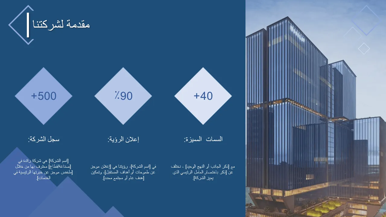 مميزات شريحة عرض قالب ملف تعريف الشركة باور بوينت