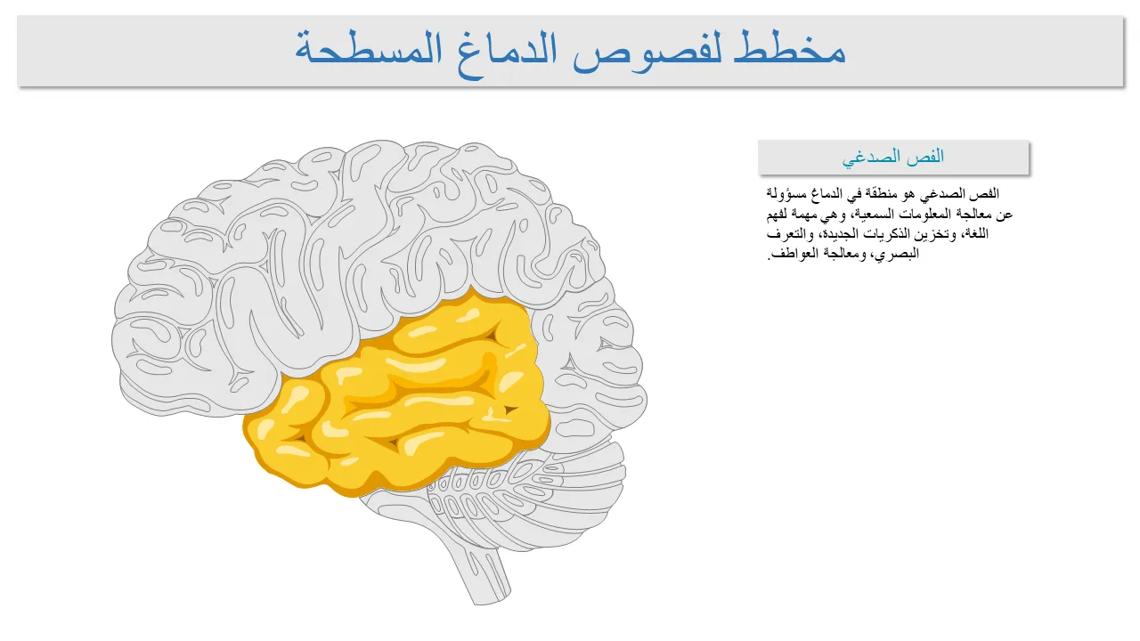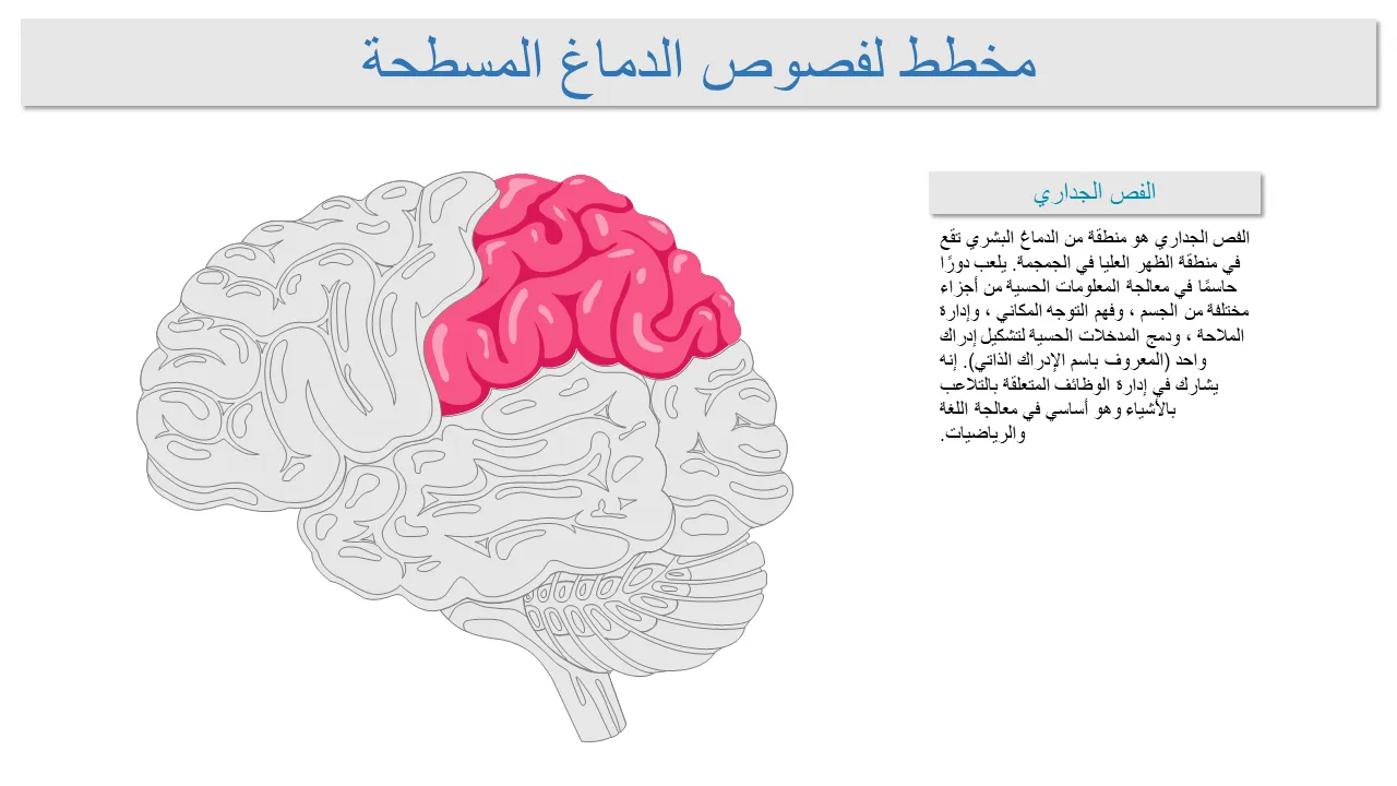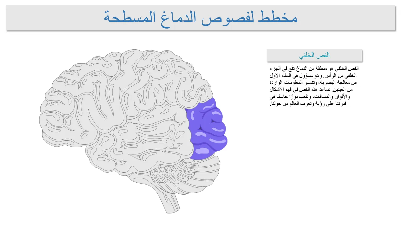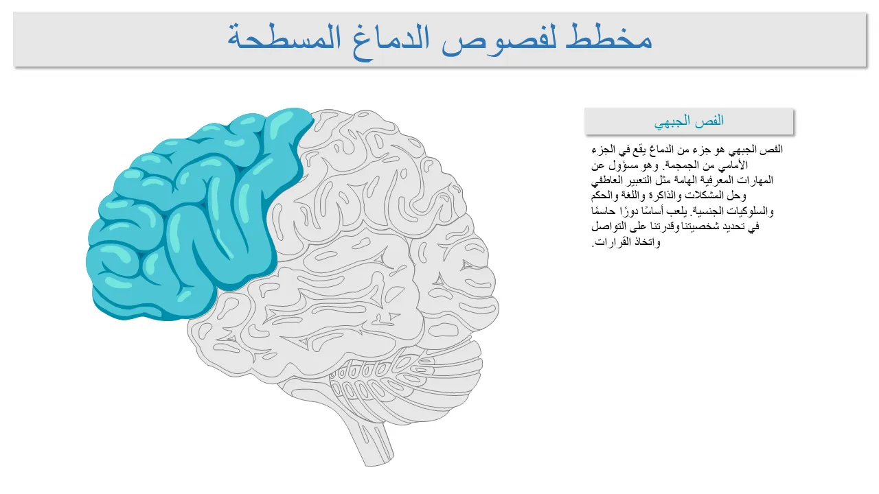 شرح قالب PowerPoint للمخطط المقطعي لفصوص الدماغ