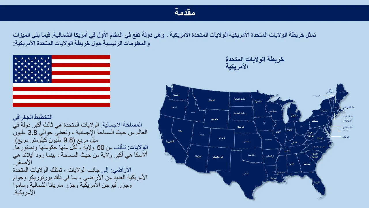 مميزات صورة ظلية لخريطة الولايات المتحدة الأمريكية قابلة للتحرير باور بوينت