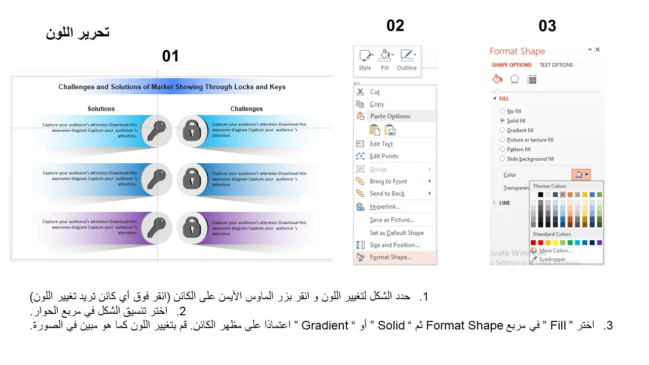 - تخطيطات الشرائح القابلة للتخصيص لتقديم تحديات وحلول محددة