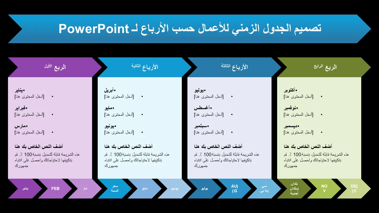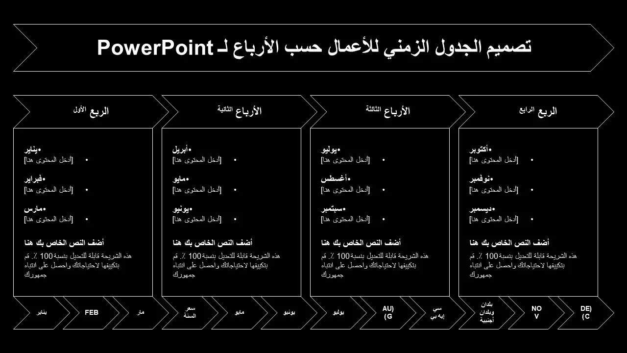 مميزات تصميم الجدول الزمني للأعمال بواسطة Quarters لبرنامج Powerpoint
