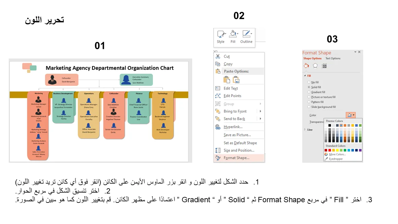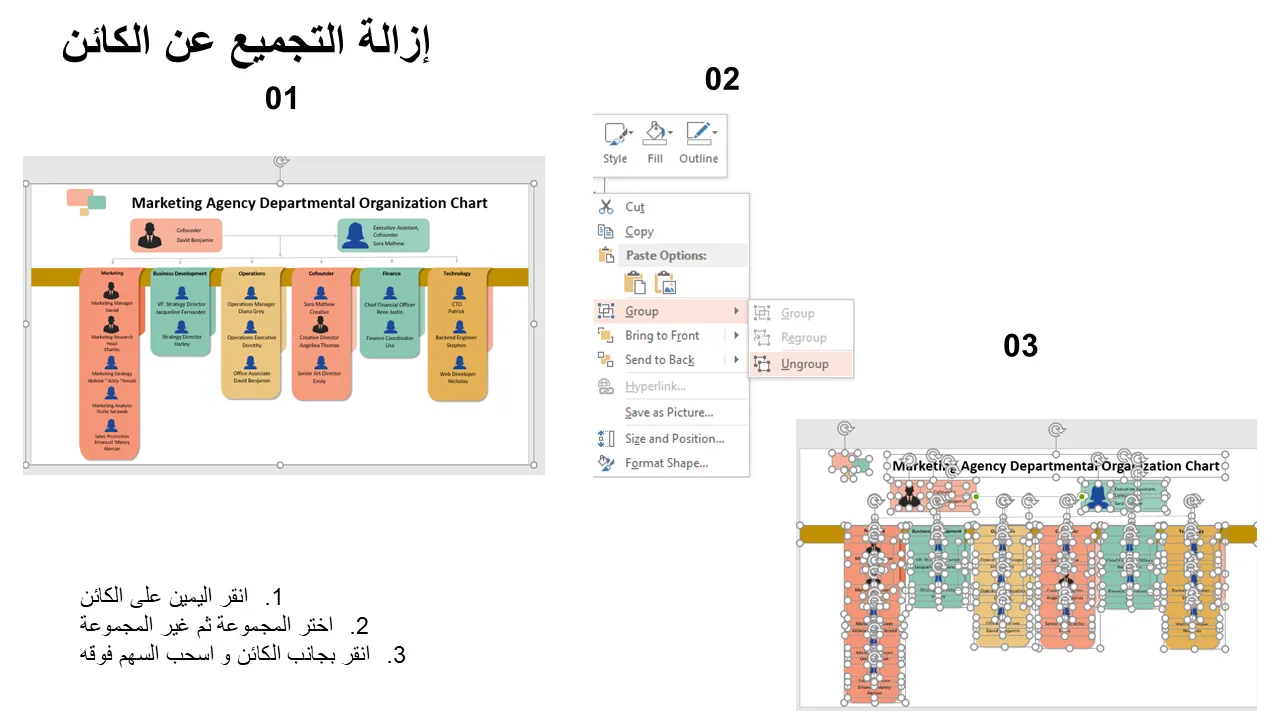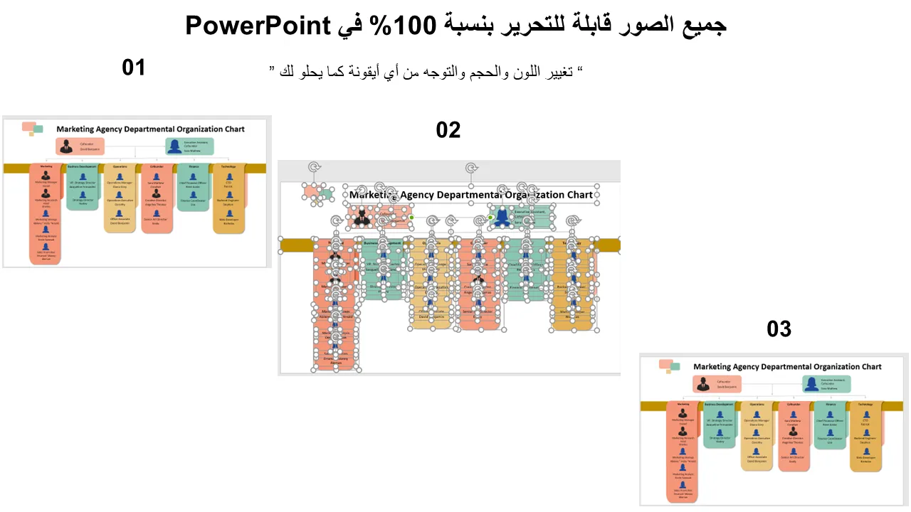 مميزات وكالة التسويق قالب الهيكل التنظيمي الإدارات باور بوينت للعروض التقديمية المهنية