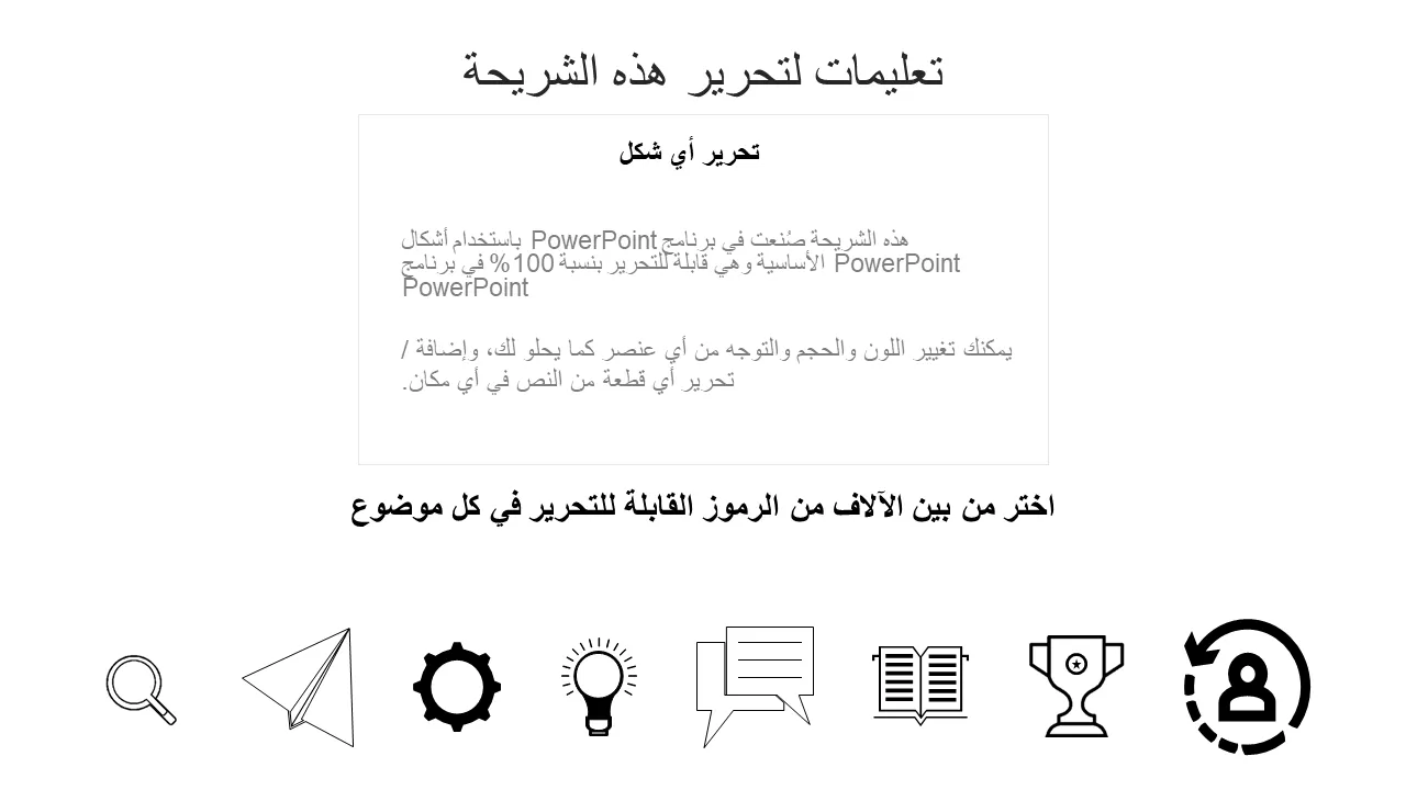 - أيقونات متجهة مسطحة للغة مرئية متسقة عبر جميع الشرائح
